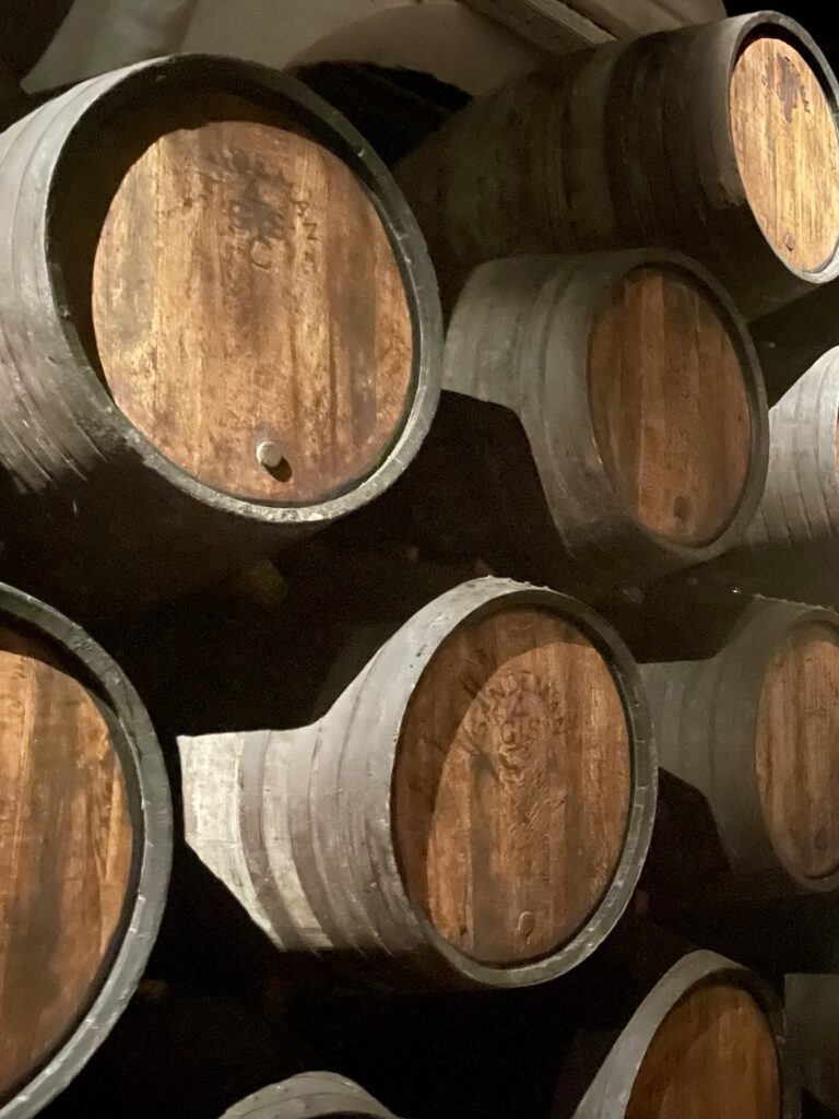 En dan horen wij je denken… dit is allemaal leuk en aardig, maar waar blijft die port? Nou dag zeven stond, na een eenvoudige maar lekkere lunch bij Esquires Coffee, dan echt in het teken van een bezoek aan één van de porthuizen in Vila Nova de Gaia, en wel de meest commerciële die Porto rijk is, namelijk Sandeman (ja die met dat Zorro mannetje als logo). Je kunt ervan vinden wat je wil, maar ze weten wel hoe ze een goede show neer moeten zetten. De gids, gehuld in zorro-kostuum, neemt je mee de portkelders in en laat je de grote en kleine houten vaten zien waar de portwijn ligt te rijpen terwijl hij vertelt over de geschiedenis van de port en uitlegt hoe de vinificatie eraan toegaat. Natuurlijk mogen we ook een kijkje nemen bij hun vintage port afdeling, waar achter tralies een reeks flessen onder een dikke stoflaag ligt te rusten, sommigen zelfs uit 1970! We sluiten het bezoek uiteraard af met een portproeverij, waarbij we een witte, een ruby en een tawny port mogen proberen. Commercieel of niet, het smaakte ons prima en ook naar meer, en dus streken we op het terras van Sandeman neer en dronken daar een “Ruby on the rocks”, een ijskoude ruby port met crushed ice, heerlijk verkoelend bij 30 graden.