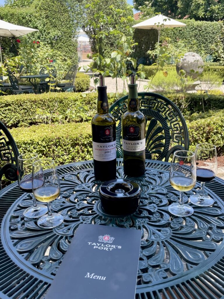 Dag negen was vervolgens ook onze laatste dag en dus besloten we deze wijntrip af te toppen met nóg een portproeverij, deze keer iets minder commercieel en iets meer stijl bij Taylor’s in Vila Nova de Gaia. Hier proefden we een Late Bottled Vintage uit 2017 en een Chip Dry witte port. Die laatste is een droge witte port, waarbij de vergisting langer duurt en de meeste suikers worden omgezet in alcohol, waarna dan pas de Aguardente wordt toegevoegd. Het is dé perfecte port voor witte port-tonic, met ijsblokjes en een schijfje citroen. Aansluitend op de portproeverij genoten we van een luxe afscheidslunch bij Taylor’s Barão Fladgate Restaurant, een prachtige plek met mooi uitzicht over de Douro rivier en Porto, en zalig eten.